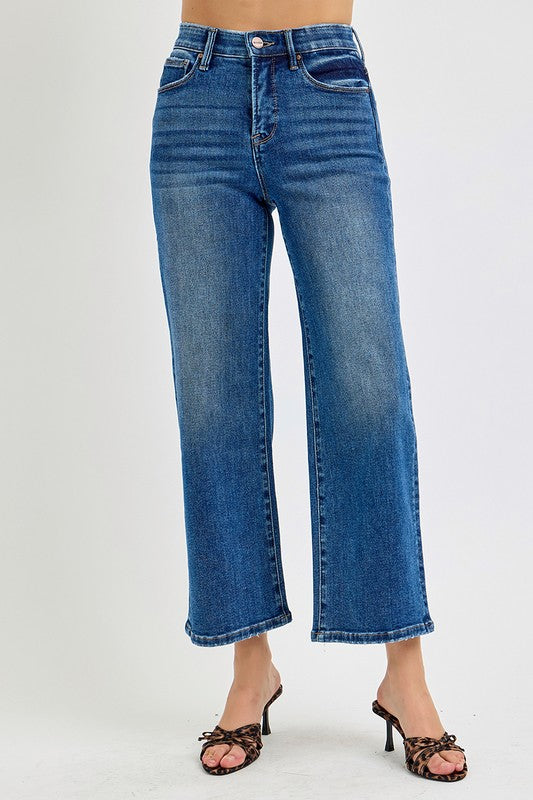 Risen Tummy Control Elastic Band High Rise Crop Wide Jeans