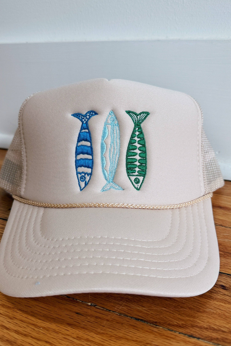 sardines are the cutest most off the wall trend.. donβt know who started it but WE ARE IN πππ sardine embroidered foam trucker hat! perfect accessory for summer!