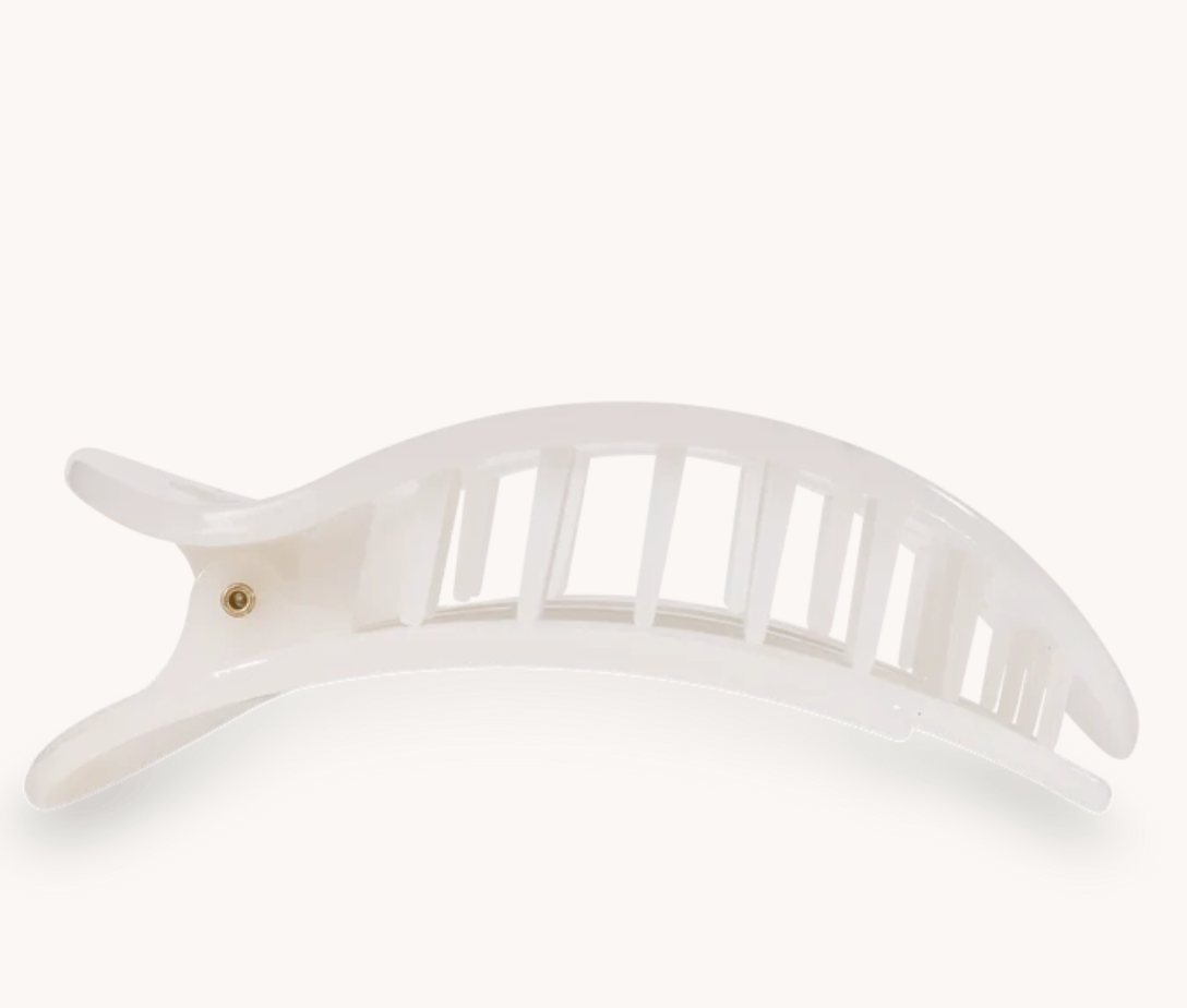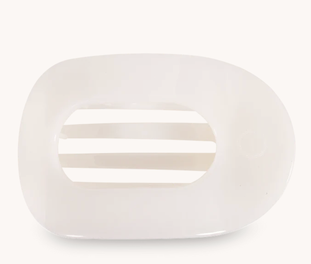 Lay flat and relax with the new TELETIES Coconut White Large Flat Round Hair Clip in White. This hair clip is designed to allow you to lay back flat, do yoga, or sit comfortably in a seat with a headrest, and it is made with the same material that is nearly unbreakable.