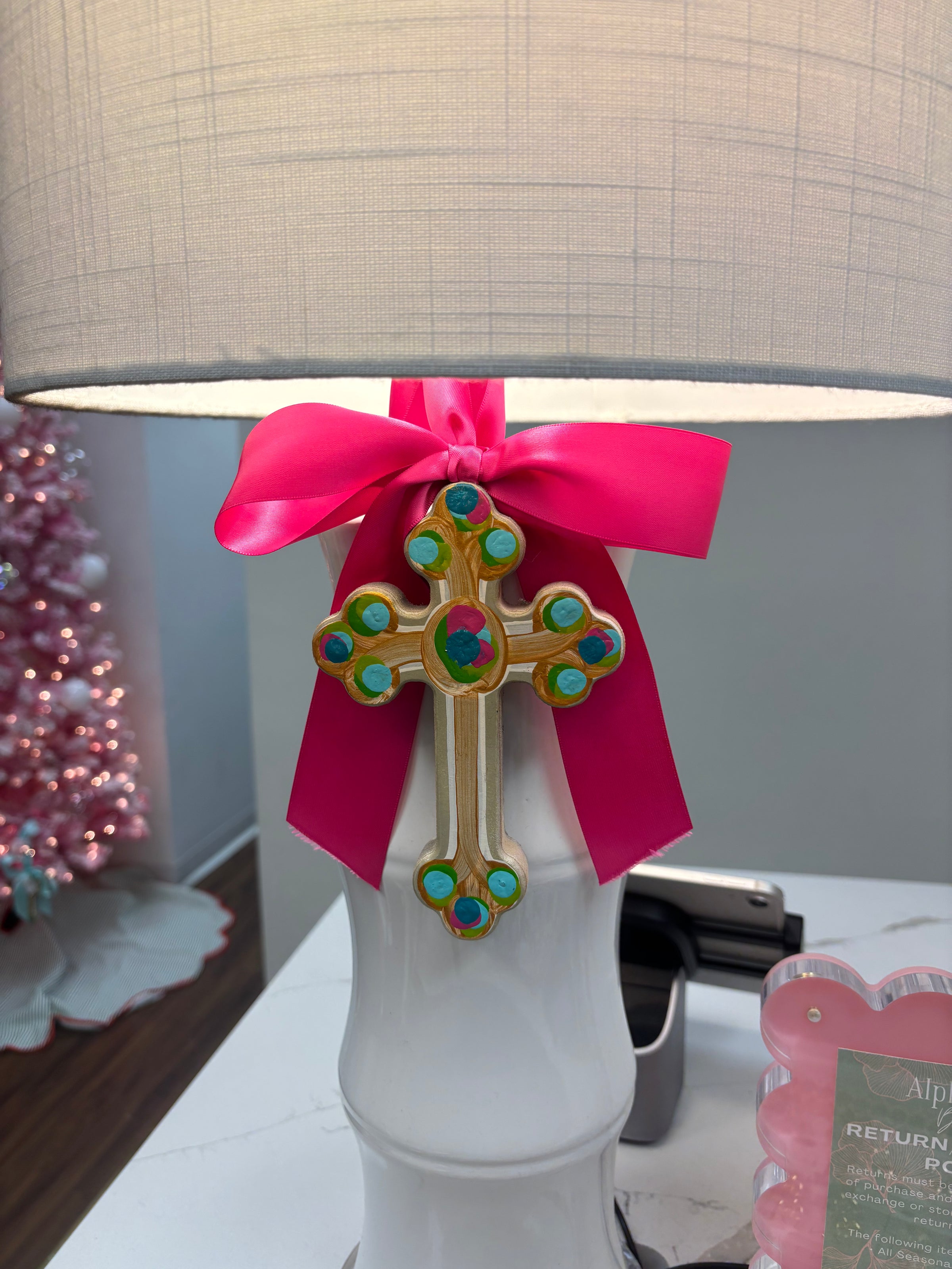 - Satin bow attached to the top