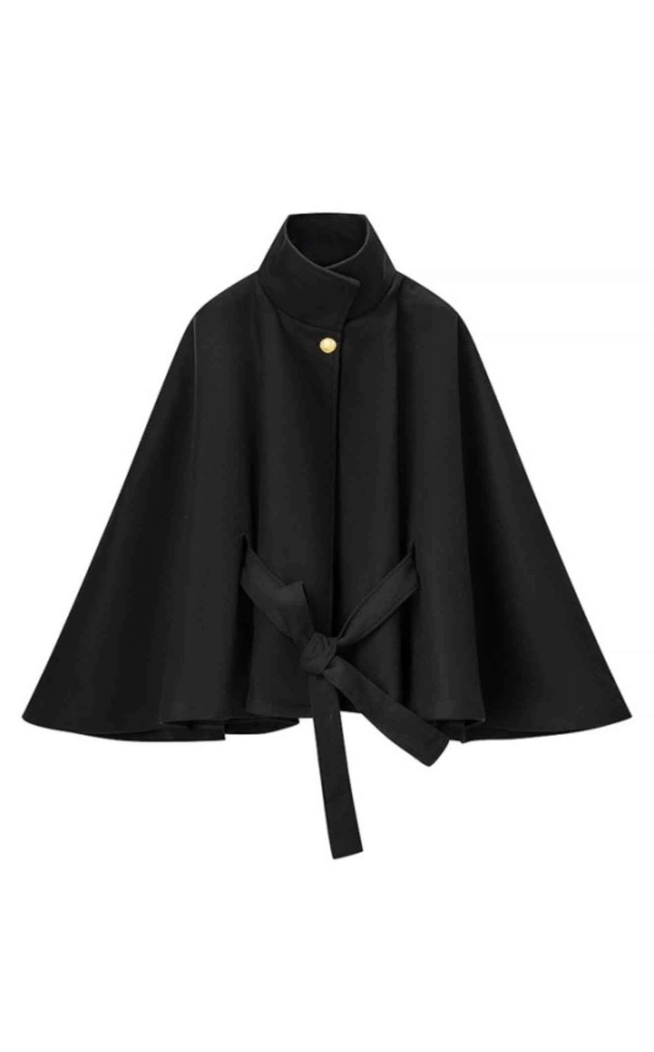 The Tate Belted Wool Cape Coat in Black