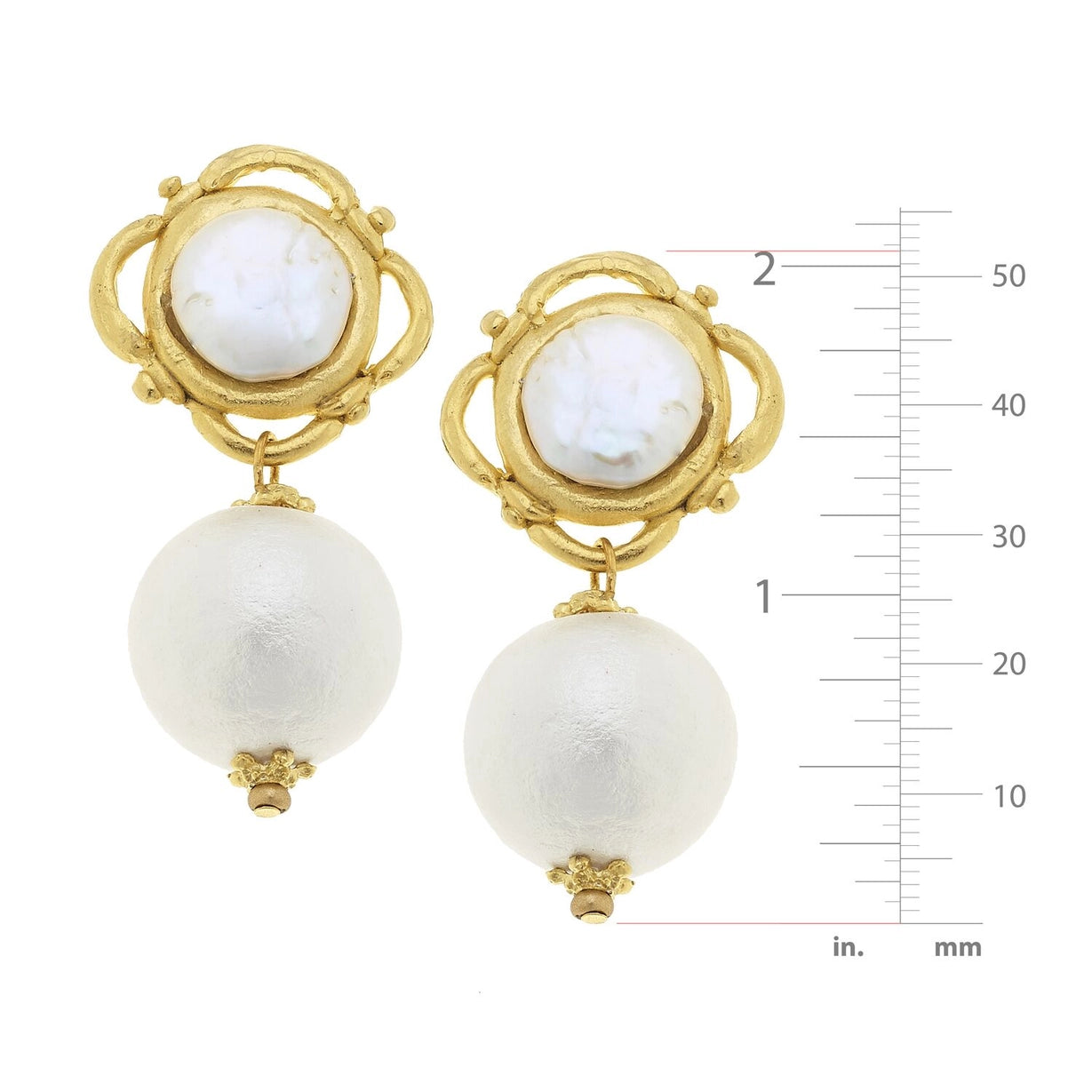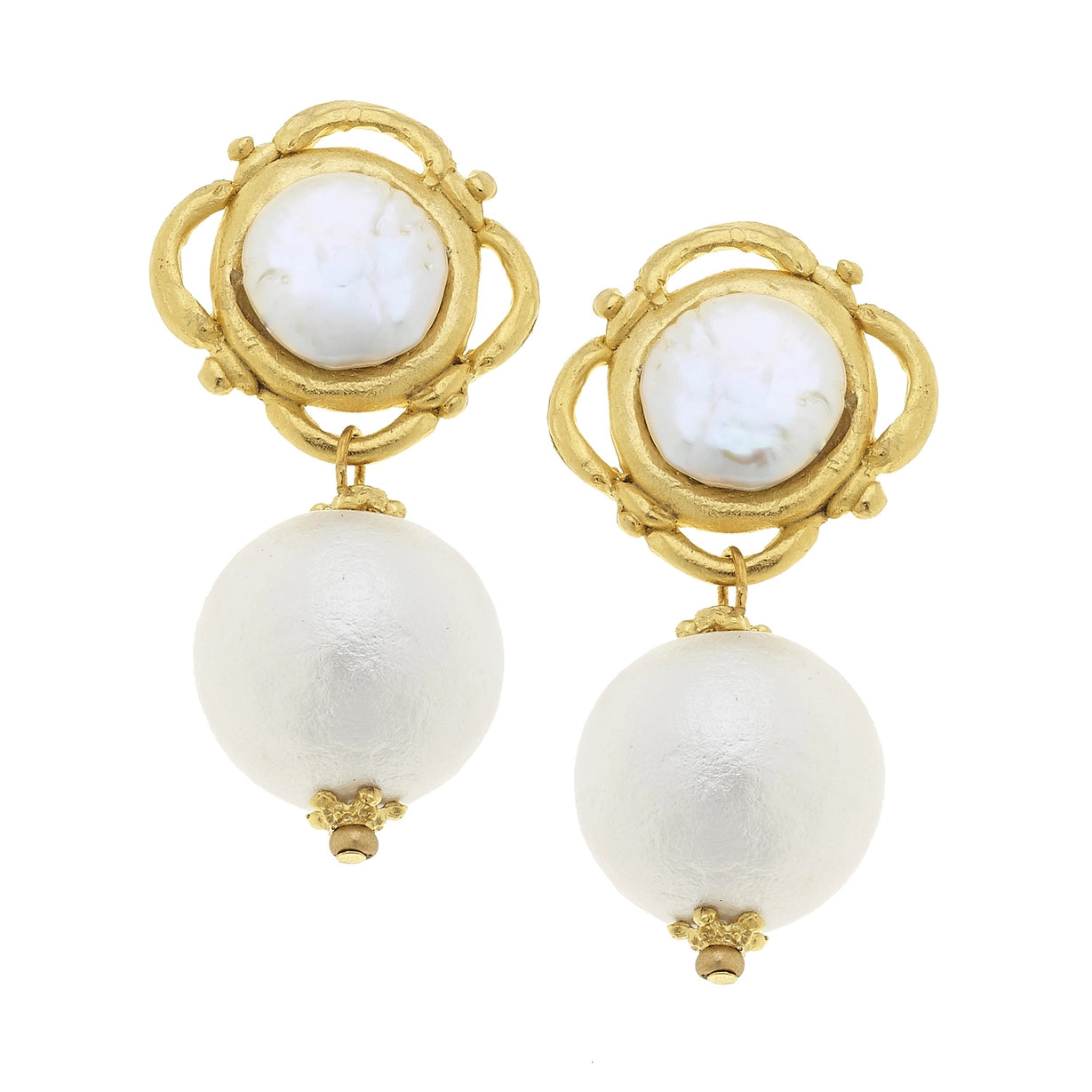 Experience the elegance of Susan Shaw's designs with our Gold with Cotton Pearl Earrings.
