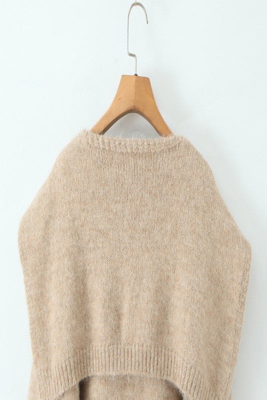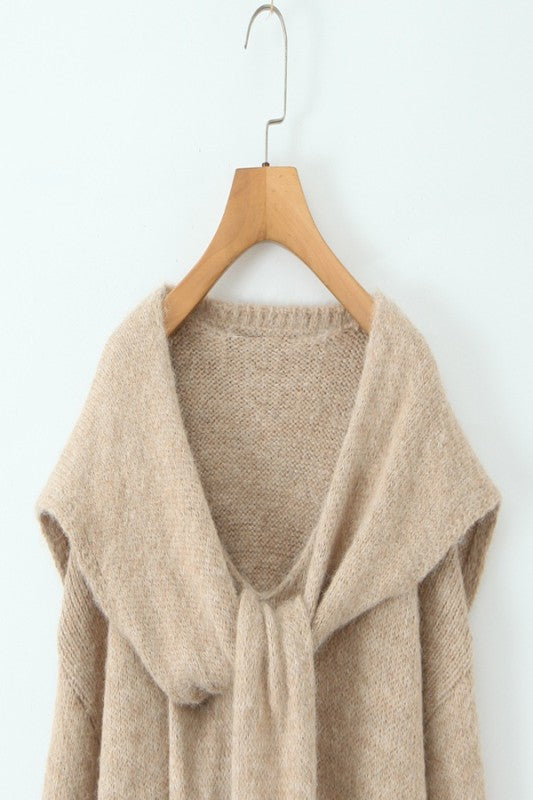 CUTE AND COZY SOLID SHAWL KNITTED SWEATER