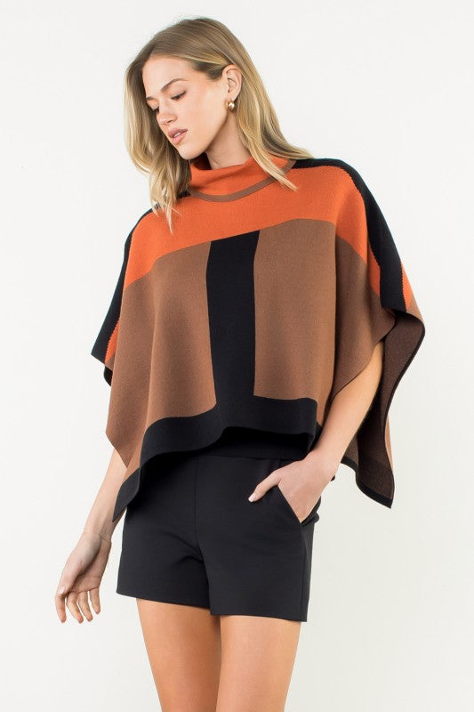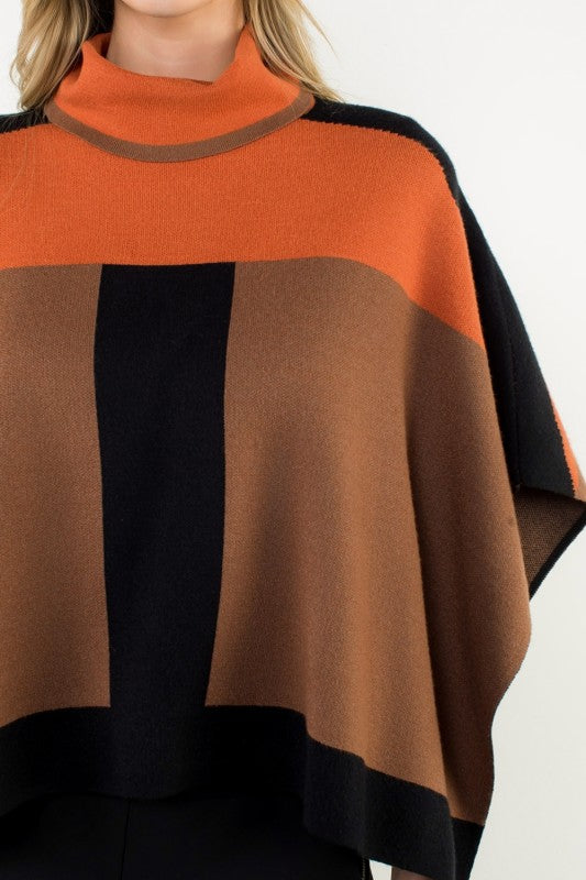 The Diana Colorblock Turtleneck Knit Poncho