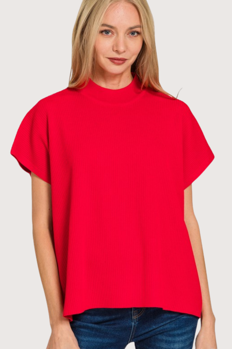 Crowd Pleaser Ribbed Knit Top in Red