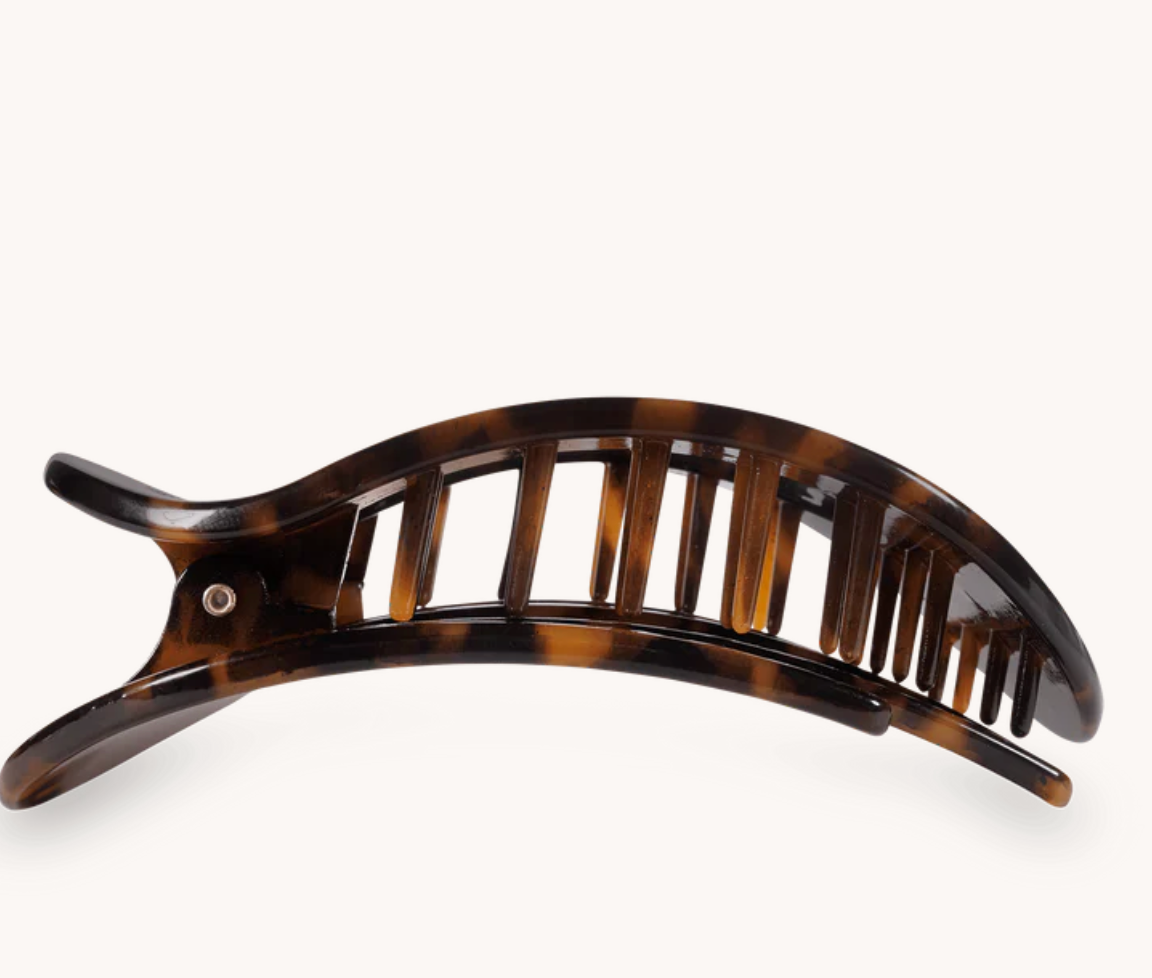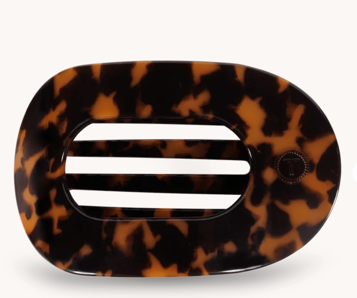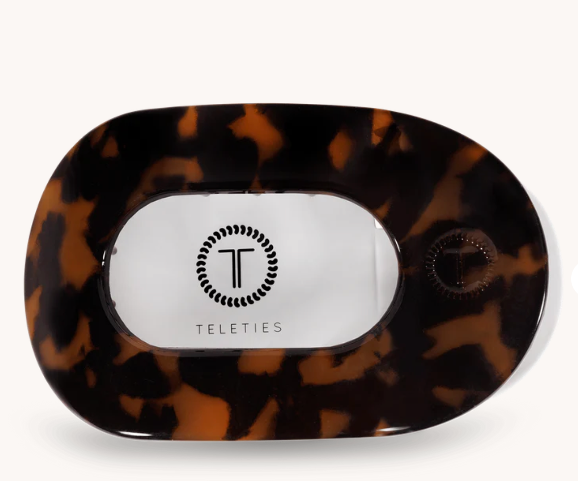 Lay flat and relax with the new TELETIES Tortoise Large Flat Round Hair Clip. This hair clip is designed to allow you to lay back flat, do yoga, or sit comfortably in a seat with a headrest, and it is made with the same material that is nearly unbreakable.